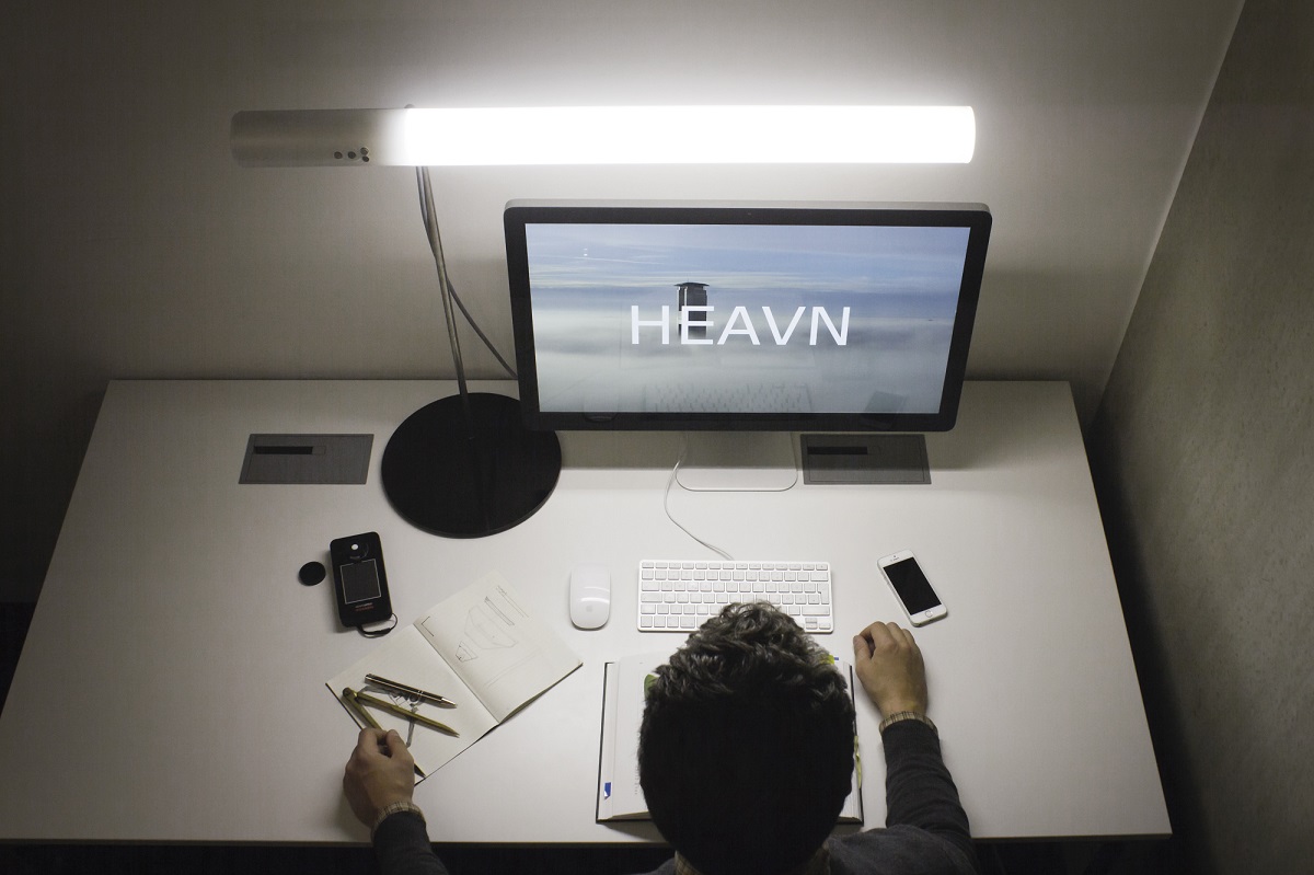Wir sind die drei Gründer von HEAVN und verkaufen visuelles Koffein. Hierzulande verbringt der Mensch viel Zeit in Räumen mit statischem Licht — unser Körper leidet darunter. Deshalb haben wir eine Technik entwickelt, die die verschiedenen Eigenschaften von Sonnenlicht dynamisch nachbildet. Das macht uns nachweisbar produktiver und erhöht das Wohlbefinden.