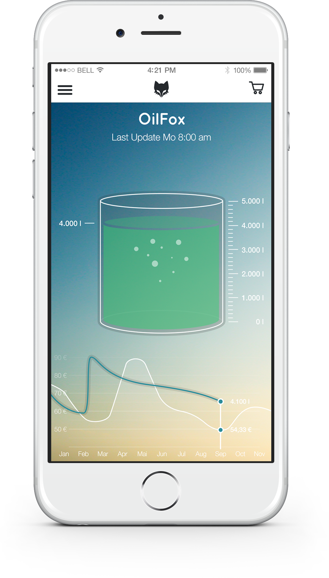 Wir sind OilFox, ein smarter Füllstandmesser für den Heizöltank. Unser Gründer Markus hatte die Idee den OilFox zu entwickeln, um sowohl den Füllstand, als auch die aktuellen Einkaufspreise im Blick zu behalten — das alles mit Intelligenz zu kombinieren und easy vom Smartphone aus steuerbar zu machen.