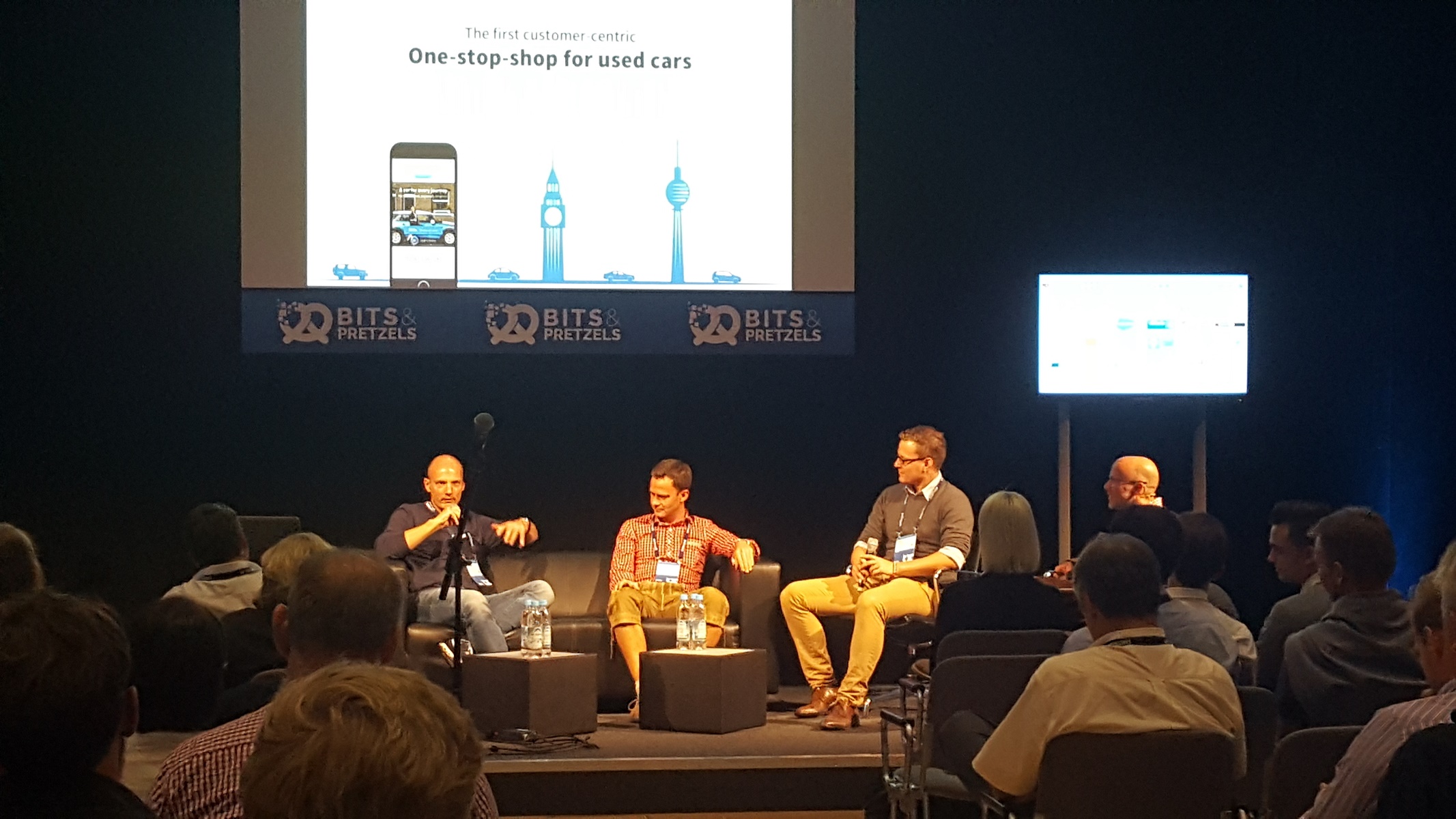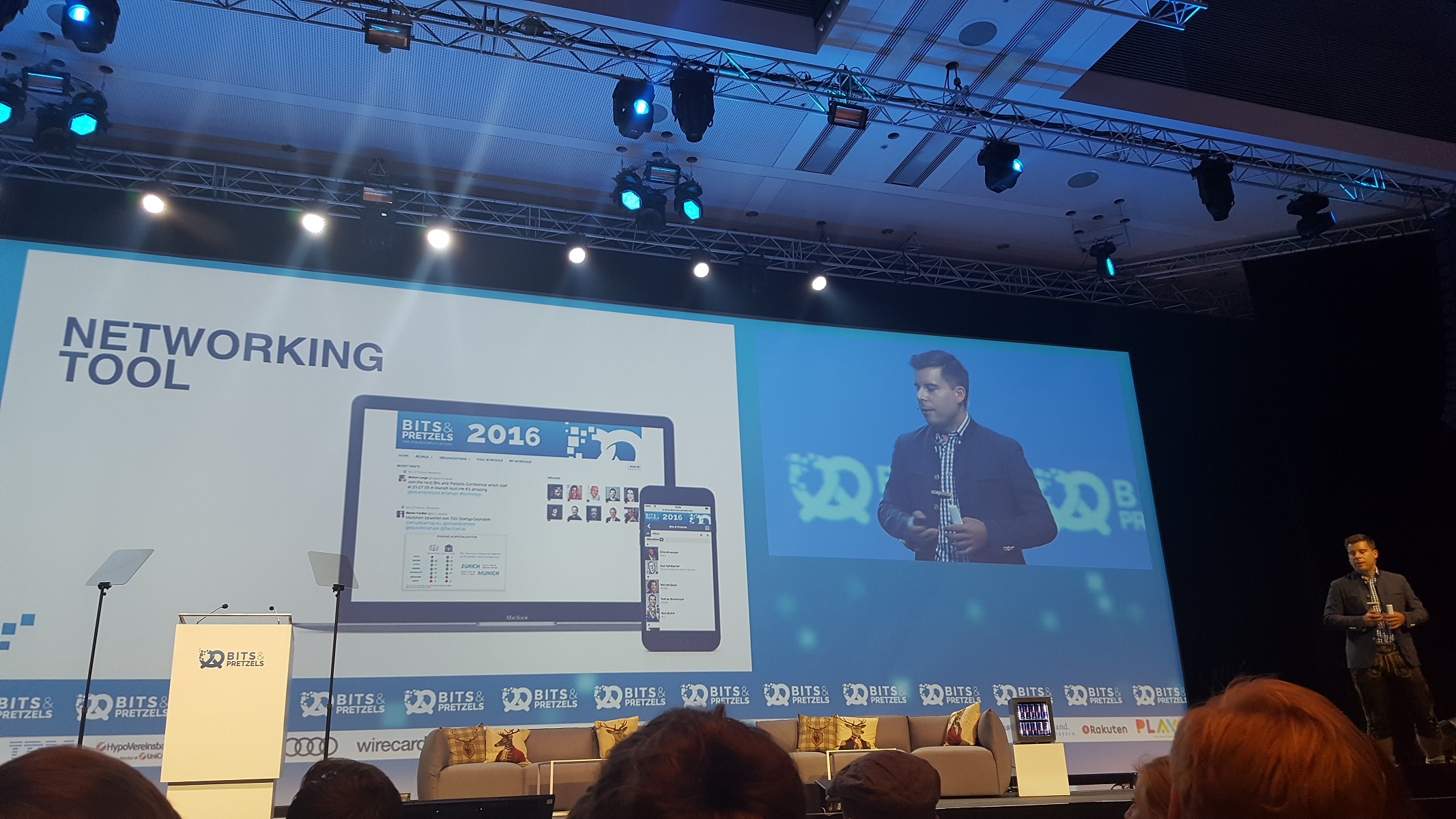 Mit etwas Verspätung beginnt dann der Countdown auf dem überdimensionalen Bildschirm. Moderator Daniel Ramamoorthy begrüßt die Zuschauer und holt Bits & Pretzels-Veranstalter Bernd Storm auf die Bühne. Sein Kollege Andreas Bruckschlögl führt anschließend durch die Zahlen: Entrepreneure aus mehr als 80 Ländern besuchen die Bits & Pretzels 2016, in 16 Minuten waren die Crazy Bird Tickets ausverkauft, erst 2 Tage vor dem Start erreichte die Veranstaltung eine schwarze Null, 10.000 Hendl und Brezn verschlingen die Besucher, jede 500. Wiesn-Maß konsumieren die Teilnehmer im Schottenhamel Festzelt. 1.000 Meetings wurden vorab über die App vereinbart. Auch Bruckschlögls Puls wird eingeblendet: 150. Selbst „Löwe“ Frank Thelen wäre beeindruckt von dieser Zahlenflut.