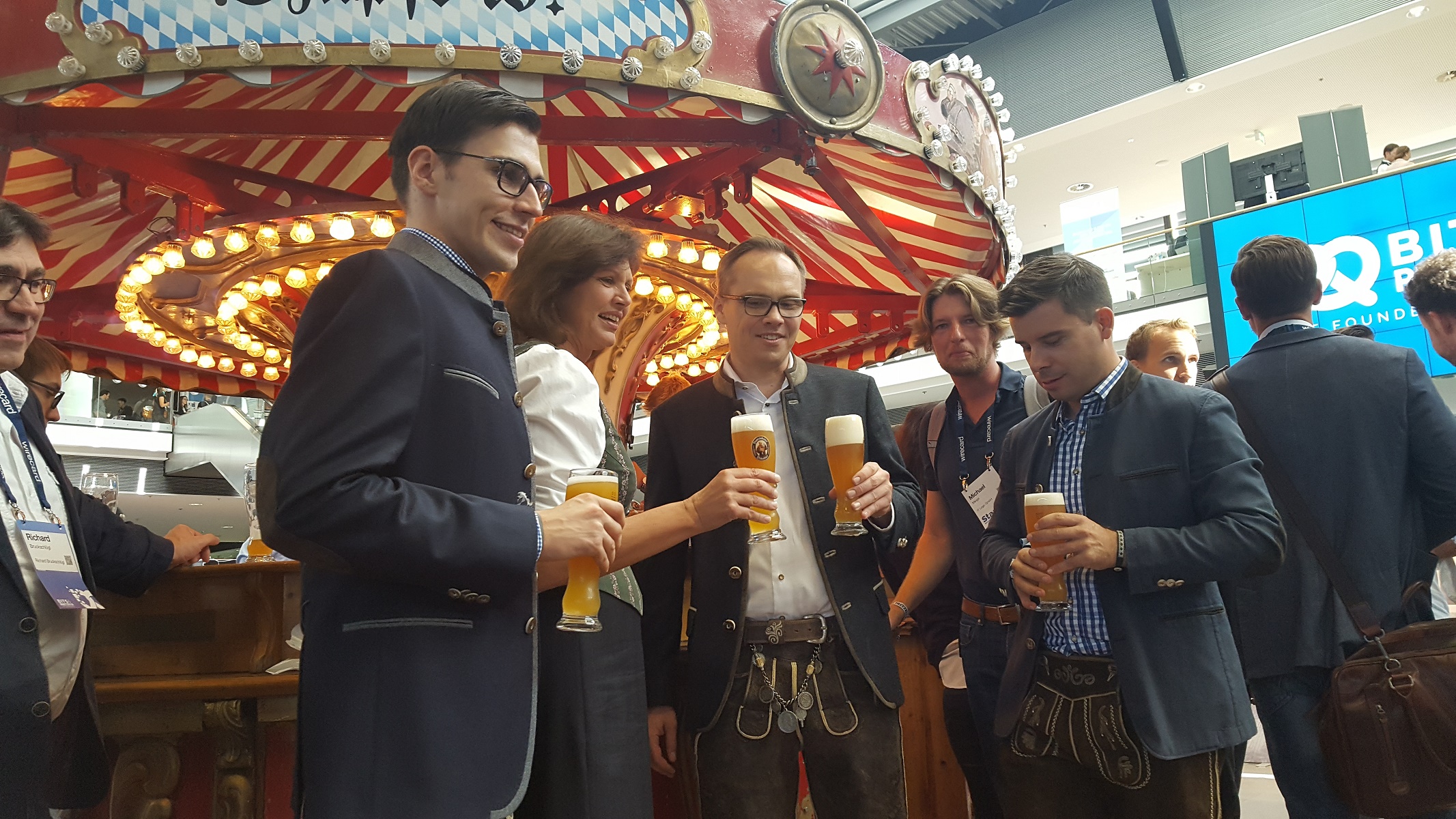 Der dritte Veranstalter in der Runde, Felix Haas, gibt anschließend einen Ausblick auf die kommenden beiden Tage. Schließlich begrüßt noch Bayerns Wirtschaftsministerin Ilse Aigner, eine frühe und treue Unterstützerin der Bits & Pretzels, die Besucher. Dank Verbavoice-Technologie sprach die Ministerin auf Deutsch und wurde Englisch untertitelt.