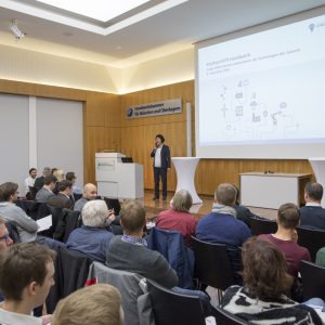 Besonders aufmerksam werden die Teilnehmer, als Innovationsberater Räß vom Digitalbonus.Bayern berichtet: Ein Förderprogramm des Freistaates, bei dem vor allem kleine und mittlere Unternehmen bei der Digitalisierung ihres Betriebs finanziell unterstützt werden sollen.