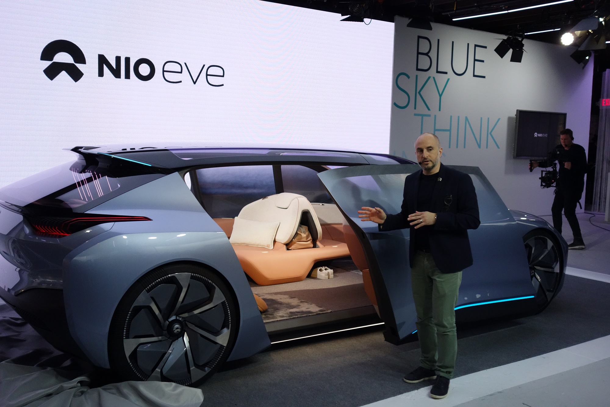 Das beeindruckende Design des Autos wird im Münchner Büro entwickelt. Weitere Komponenten kommen aus San Jose, Shanghai und London. NIOs US-CEO Padmasree Warrior sagt bei der Vorstellung: