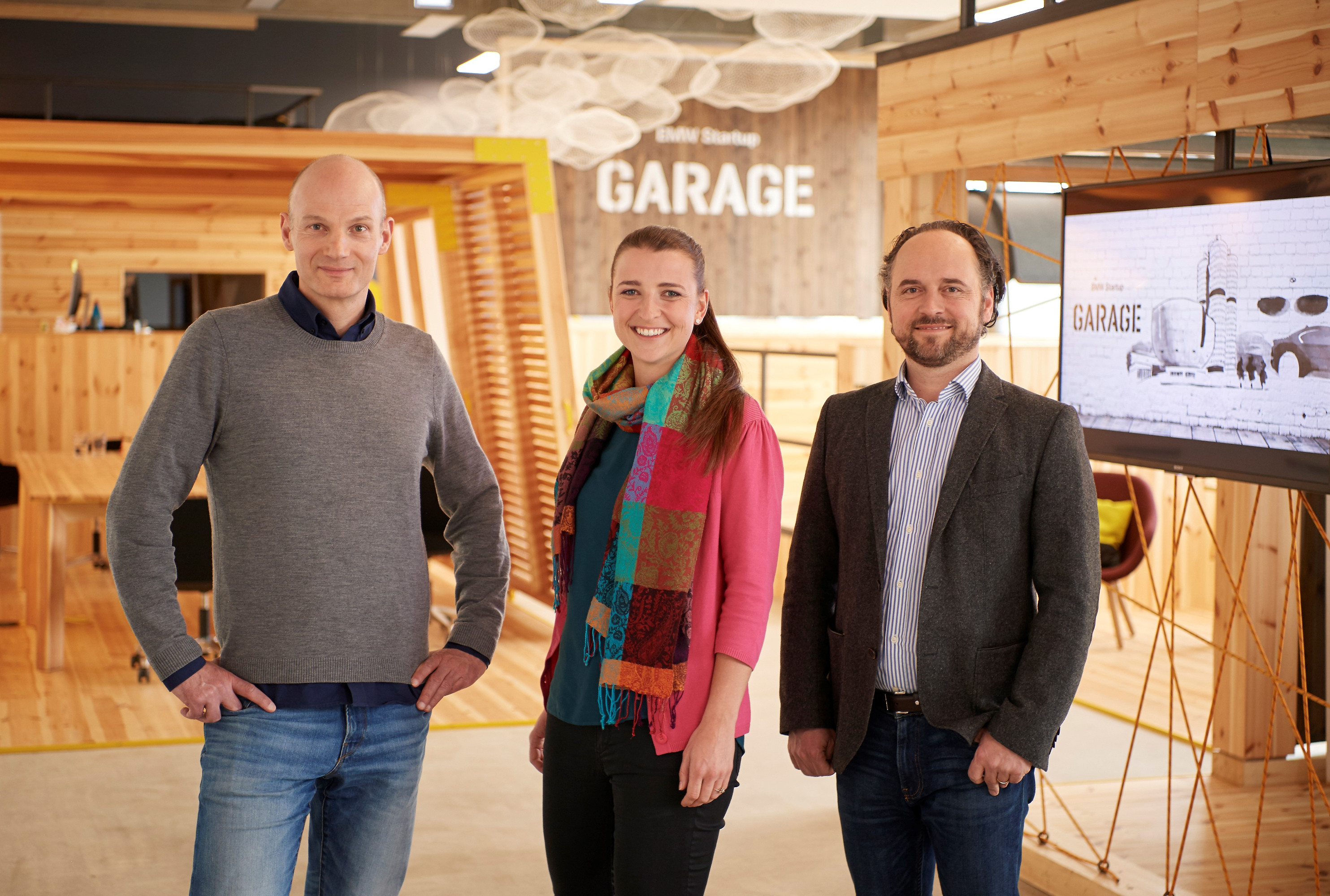 Das Team der BMW Startup Garage: Gregor Gimmy, Ana Carolina Alex und Matthias Meyer. (v.l., Foto: BMW)