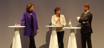 Krüger betont dabei die Schwere der gegenwärtigen Herausforderung für den Münchner Weltkonzern: Einerseits wolle man die firmeneigene „Kultur der Perfektion“ bewahren, andererseits müsse man schneller und agiler werden — „Fail fast, learn fast!“ Die Zukunft liegt in der autonomen Mobilität, gleichzeitig wolle BMW seinen Kunden weiterhin auch die „Freude am Fahren“ bieten. Ein schwieriger Spagat. Panel-Moderatorin Ursula Heller fragt spitz nach: Ein Spagat, bei dem die Hose reißen könnte?