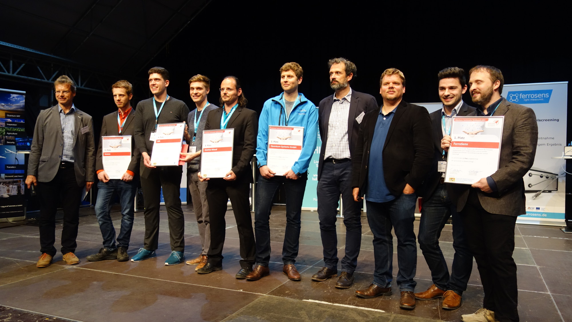 Auf dem ersten Platz landete Ferrosens. Das Münchner Startup hat eine Methode entwickelt, um Eisenmangel schnell, einfach und sicher festzustellen — ohne, dass ein Tropfen Blut fließen muss. Auf dem zweiten Rang folgt Quantum Systems. Das Startup baut eine unbemannte Drohne, die wie ein Multicopter senkrecht starten kann und mit der Geschwindigkeit eines Flugzeugs fliegt. Platz drei geht an Alethia Wood mit deren Beschichtungen von Naturprodukten. Auf Platz vier landet Blik mit einer Software, die in Echtzeit Warenströme in Lagern abbildet. Ebenfalls noch unter den fünf Ausgezeichneten: Inveox. Das Jungunternehmen entwickelt intelligente Container für Gewebeproben. Carsten Rudolph sagt über die Gewinner: