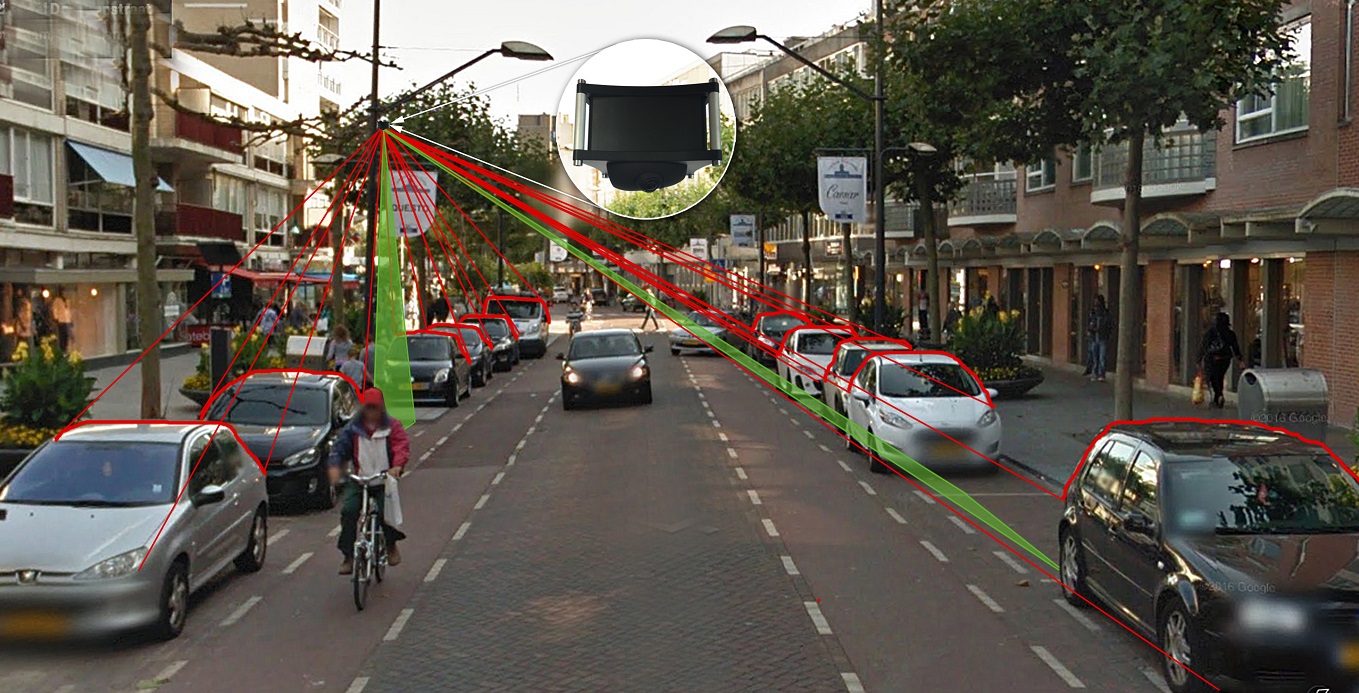Der Vorteil? Die Fläche des Parkplatzes muss nicht voreingezeichnet sein, die Installation ist innerhalb von einer halben Stunde erledigt und deckt dabei bis zu 300 Parkplätze ab – und im Gegensatz zu Bodensensoren gibt es auch keine Probleme bei Baustellen, wenn die Straße aufgerissen werden muss.