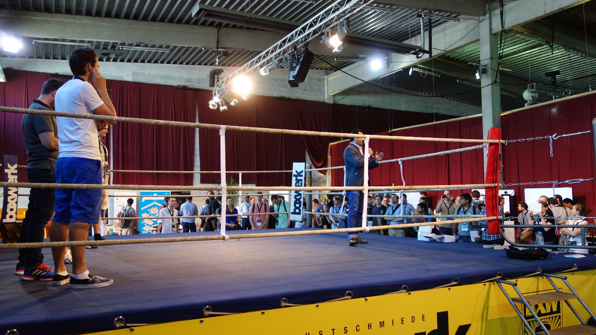 In einer großen Halle neben dem Backstage-Gelände brachten die Veranstalter die Startup-Area unter. Startups und Ökosystem-Player präsentierten sich an Ständen, auf einer eigene Bühne wurden Startup-Themen verhandelt und in der Mitte der Halle stand ein Boxring. In diesem lieferten sich Startups ein Pitch-Battle der etwas anderen Art im Founders Fight Club: Zwei Gründer pitchten im Ring gegeneinander, suchten die Schwachstellen des Gegners. Das Publikum bestimmte anschließend den Gewinner. Das schöne Format litt leider etwas unter der schlechten Akustik in der Halle.