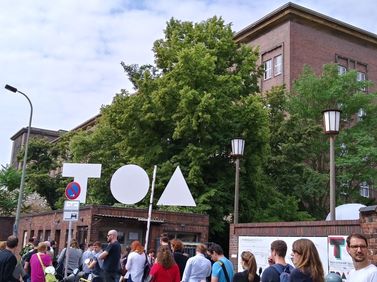 Der Mittwoch, der erste Konferenztag des viertägigen Tech-Festivals, beginnt jedoch mit einigen Hindernissen. Bei Ankunft auf dem Gelände zeigen sich die Besucher sichtlich schockiert von der langen Warteschlange, die sich von der Registrierung bis hinaus auf die Straße erstreckt. Als Pressevertreter geht man an dieser gemütlich vorbei, in dem Glauben, sicherlich schnell durchgewunken zu werden. Doch auch für Speaker, Helfer, Medienvertreter usw. beträgt die Wartezeit gut eine Stunde, bis man letztendlich über das idyllische Veranstaltungsgelände an der Spree schlendern kann, den obligatorischen — am Einlass ergatterten — TOA-Jutebeutel über der Schulter tragend, versteht sich.