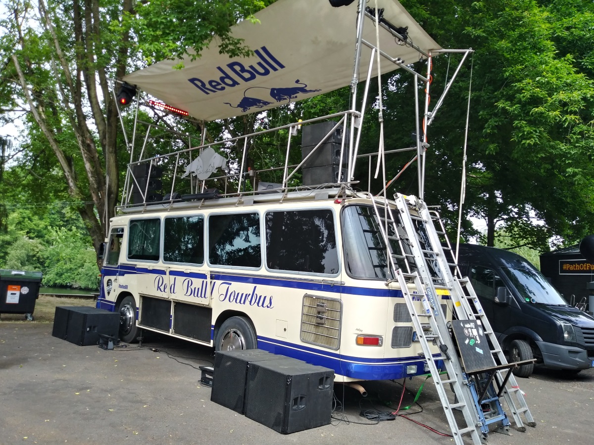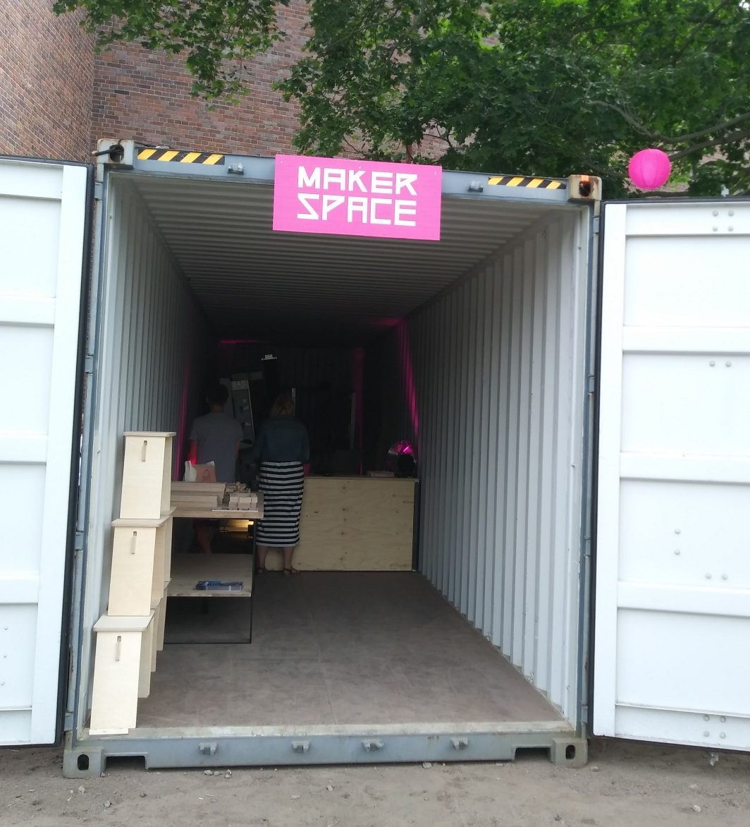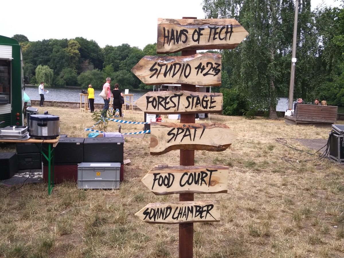 Dieses entspricht den Erwartungen, die man an ein Berliner Event hat: diverse Musikbühnen, DJ-Booths und Foodtrucks. Auch ein Open Lab und einen kleinen Container-Makerspace (siehe Bild oben) findet man vor. Am Flussufer stehen Biergarnituren und Sonnenschirme. Es ist also alles bereitet für eine gute Open-Air-Veranstaltung.