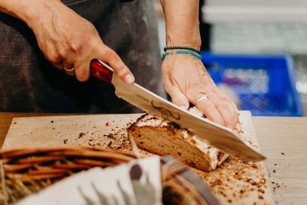 Auf die Kurzpräsentationen folgte das sommerliche Netzwerken mit kreativen und regionalen Schmankerln, wie beispielsweise dem Brot von Tom the Baker. © Laura Engeser