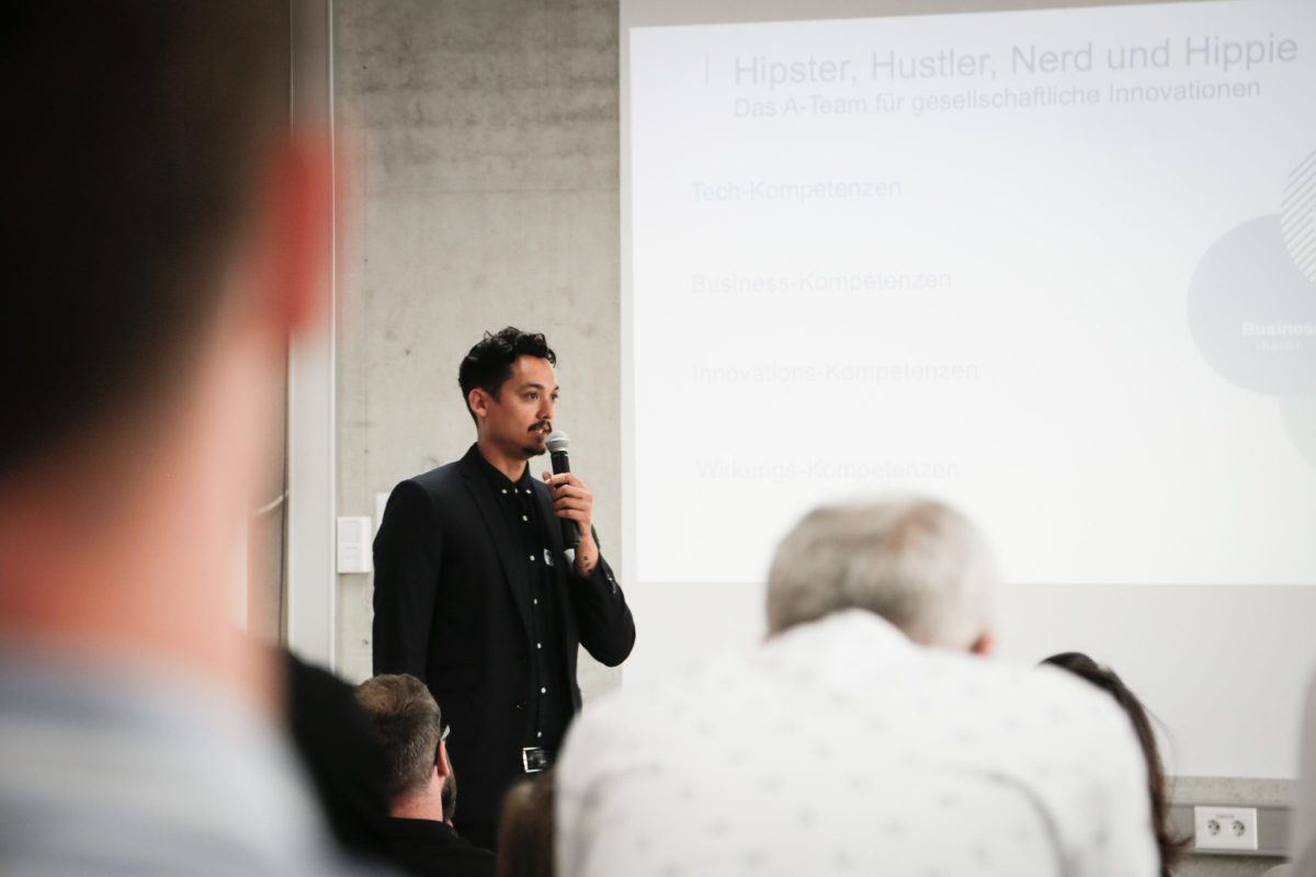 „Hipster, Hustler, Nerd und Hippie: Kompetenzen fürs 21. Jahrhundert“ lautete der Titel des Vortrags von Sebastian Planck. Aber der Leiter des Bereichs Qualifizierung der SEA brachte nicht nur Buzzwords, sondern gab den Teilnehmern des Events auch Erklärungen, wieso die „Vier Cs“ Collaboration, Communication, Critical thinking und Creativity nicht nur für Sozialunternehmer wichtig sind. © Bernadette Stöckl/ SEA