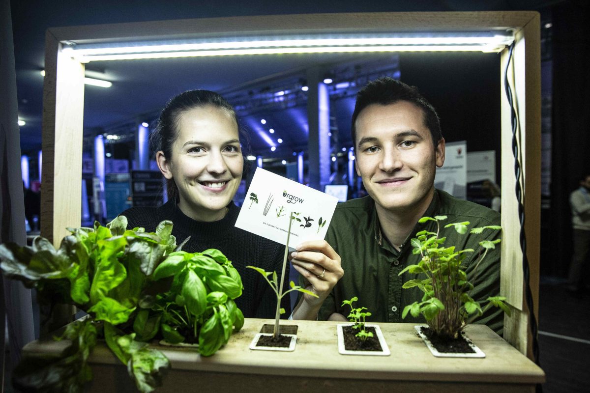 Ein noch unbeschriebenes Blatt ist das Jungunternehmen Urgrow. Die Münchner haben einen smarten Indoor-Garten entwickelt, damit jeder zu Hause CO2- und wassersparend nachhaltig Gemüse und Kräuter anbauen kann. Die Crowdfunding-Kampagne von Lisa und Pascal Wolf startet im Dezember. (Foto: Baystartup / Goran Gajanin)