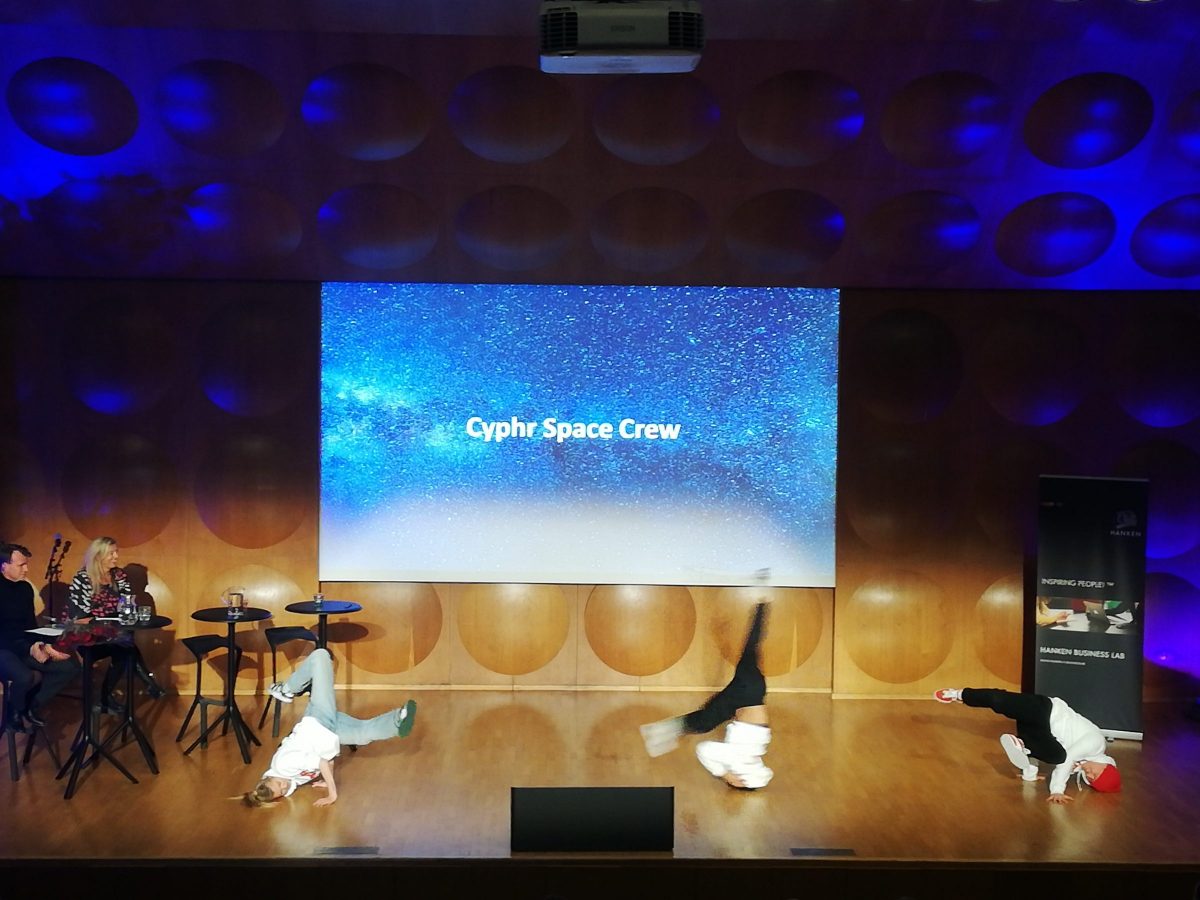 Ein wichtiger Teil der Slush – manche sagen sogar der wichtigste – sind die Side-Events, die die ganze Woche über in Helsinki stattfinden. In der Schwedischen Handelshochschule Hanken etwa gab es neben einer beeindruckenden Breakdance-Performance auch herausragende Speaker zu sehen. Der Slush-Gründer Peter Vesterbacka, Taavet Hinrikus, legendärer erster Mitarbeiter von Skype und Co-Founder von (Transfer)Wise, sowie Juhani Mykkänen, Co-Founder von Wolt, teilten ihre Erwartungen an die Startups der Zukunft. (Foto: M. Feigl – Munich Startup)