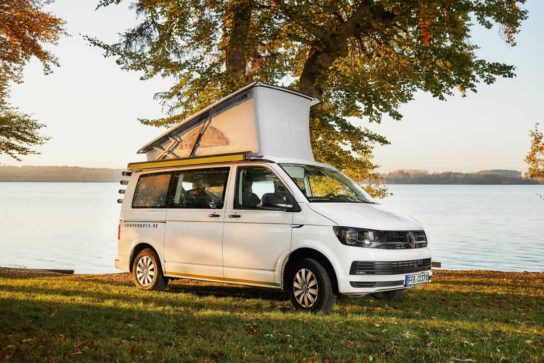 Wer eher mit einem Camper verreisen möchte, der ist bei Camperboys an der richtigen Adresse. Das junge Unternehmen aus Freising hat neben den klassischen VW-Bullis auch Camper von Mercedes oder Opel im Sortiment. Neben der Fahrzeug-Vermietung will Camperboys seinen KundInnen auch mit Hilfe einer eigenen App zu einem guten Urlaub verhelfen. Dort zu finden sind private Stellplätze, Campingplätze, Restaurants oder Vorschläge für Aktivitäten. (Foto: Camperboys)