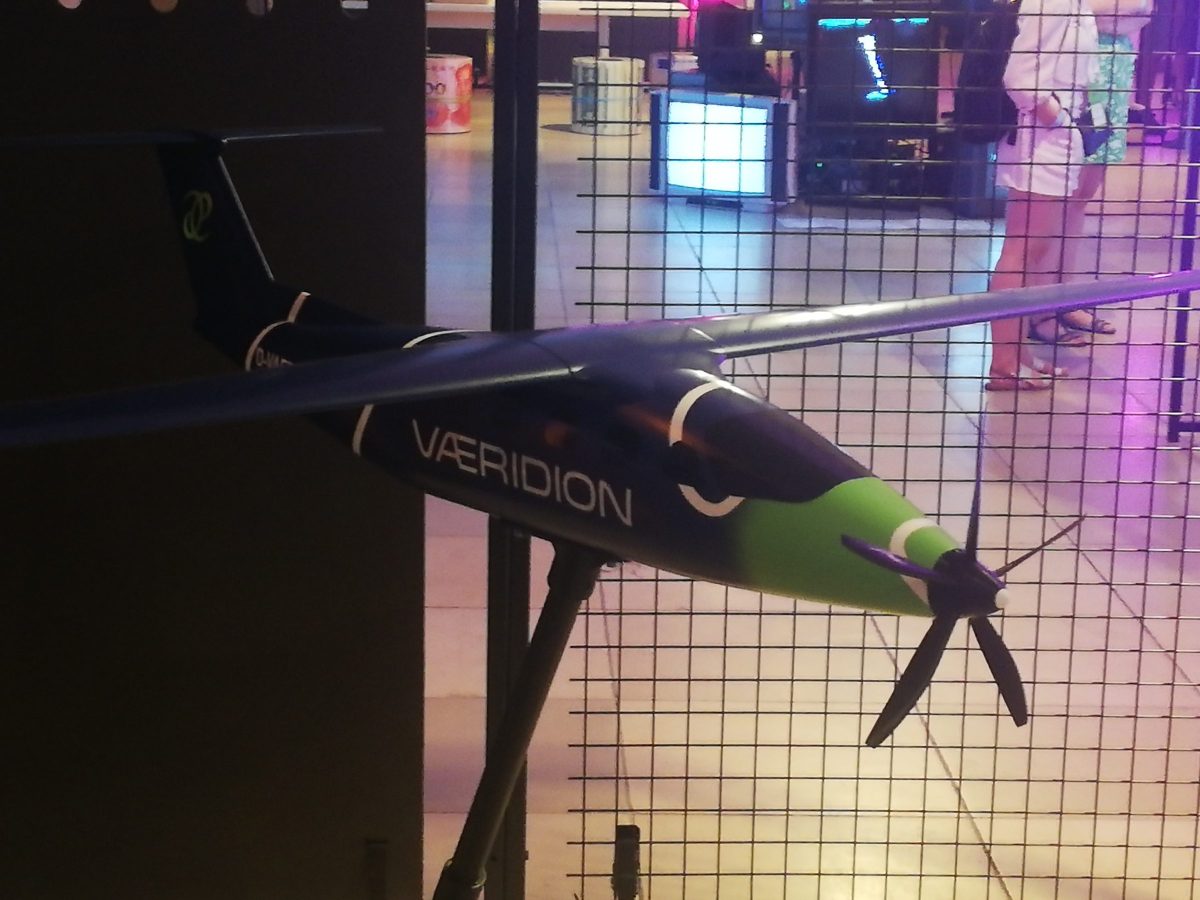 Auf der Ausstellungsfläche wimmelt es geradezu von Münchner Startups und anderen Akteuren des hiesigen Ökosystems. Neben Isar Aerospace, das sich inzwischen zu einer Art Dauergast auf der 1E9 Tech Conference entwickelt hat, finden sich auch bisher noch weniger bekannte Unternehmen, wie etwa Vaeridion. Das Startup entwickelt ein batteriebetriebenes Kleinflugzeug – einen sogenannten Microliner – der neun Passagiere plus Crew bis zu 500 Kilometer weit transportieren soll. Das Bild zeigt ein Modell im Maßstab 1:10. (Foto: M. Feigl – Munich Startup)