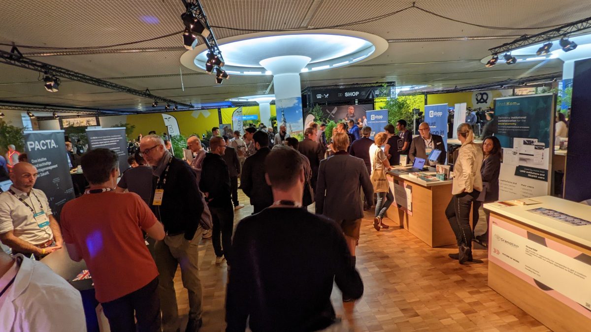 Überall auf der Startup-Konferenz präsentieren sich Startup-Unternehmen dem Publikum. Die Eigendarstellung reicht vom klassischen Messestand…