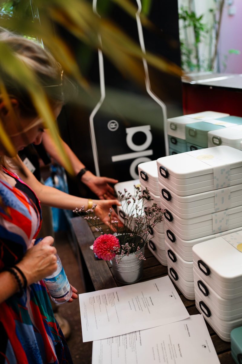 Für jede eingeladenen Teilnehmerin stand eine Lunch-Box mit einem vegan-sommerlichen Menü zur Verfügung. Zubereitet wurden die Boxen von Vegan Lunch Date, einem Münchner Startup. Passte also auch sehr gut. (Foto: Lukas Lindner / Munich Startup)