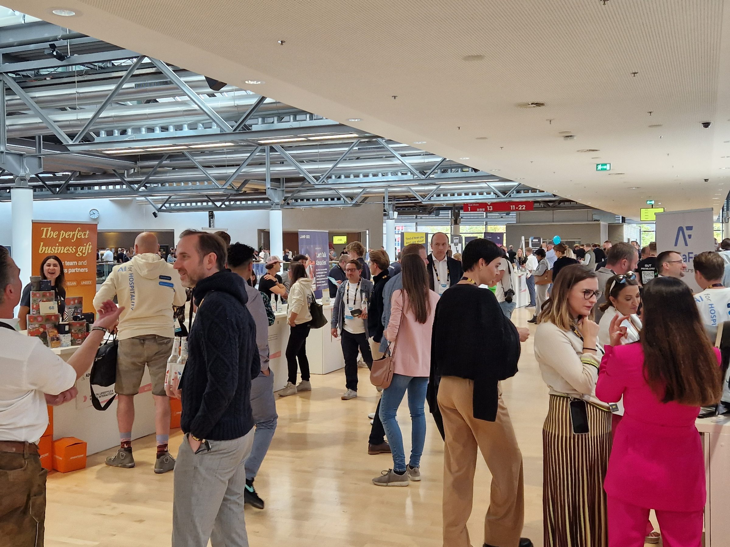 Überall auf der Startup-Konferenz präsentieren sich Startup-Unternehmen dem Publikum – insgesamt 184 an den beiden Konferenz-Tagen. Dabei müssen BesucherInnen jedoch gut aufpassen, denn die Austeller wechseln. Das heißt, dass sie am zweiten Tag komplett andere Startups entdecken können, als an Tag 1. Wer jedoch nach einem bestimmten Jungunternehmen sucht, muss auch am richtigen Tag im ICM vor Ort sein. (Foto: Munich Startup)