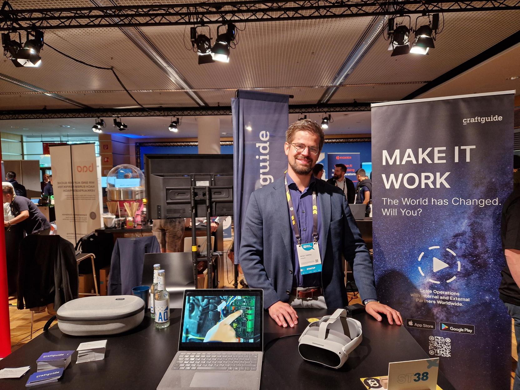 Der digitalen Arbeitsunterstützung widmet sich Craftguide. Das Startup stellt eine Plattform zur Verfügung, auf der man Workflows Schritt für Schritt abrufen kann – sowohl über eine Website mittels Smartphone oder PC als auch in VR oder AR. So sollen Fachkräfte und Hilfskräfte dazu befähigt werden, manuelle Prozesse durchzuführen, und auf der Baustelle Arbeitsunterstützung bekommen, wo sie diese brauchen. „Wir benutzen dazu automatisierte generierte Voice-Overs, dadurch ist das Ganze in bis zu 43 verschiedenen Sprachen verfügbar“, sagt CFO Adrian Indefrey. Zu Craftguides zweitem Auftritt auf dem Gründerfestival zieht er ein positives Fazit: „Die Bits ist auf jeden Fall eine super Veranstaltung. Man kann hier netzwerken, sich austauschen und neue Kontakte schmieden.“ (Foto: Munich Startup)