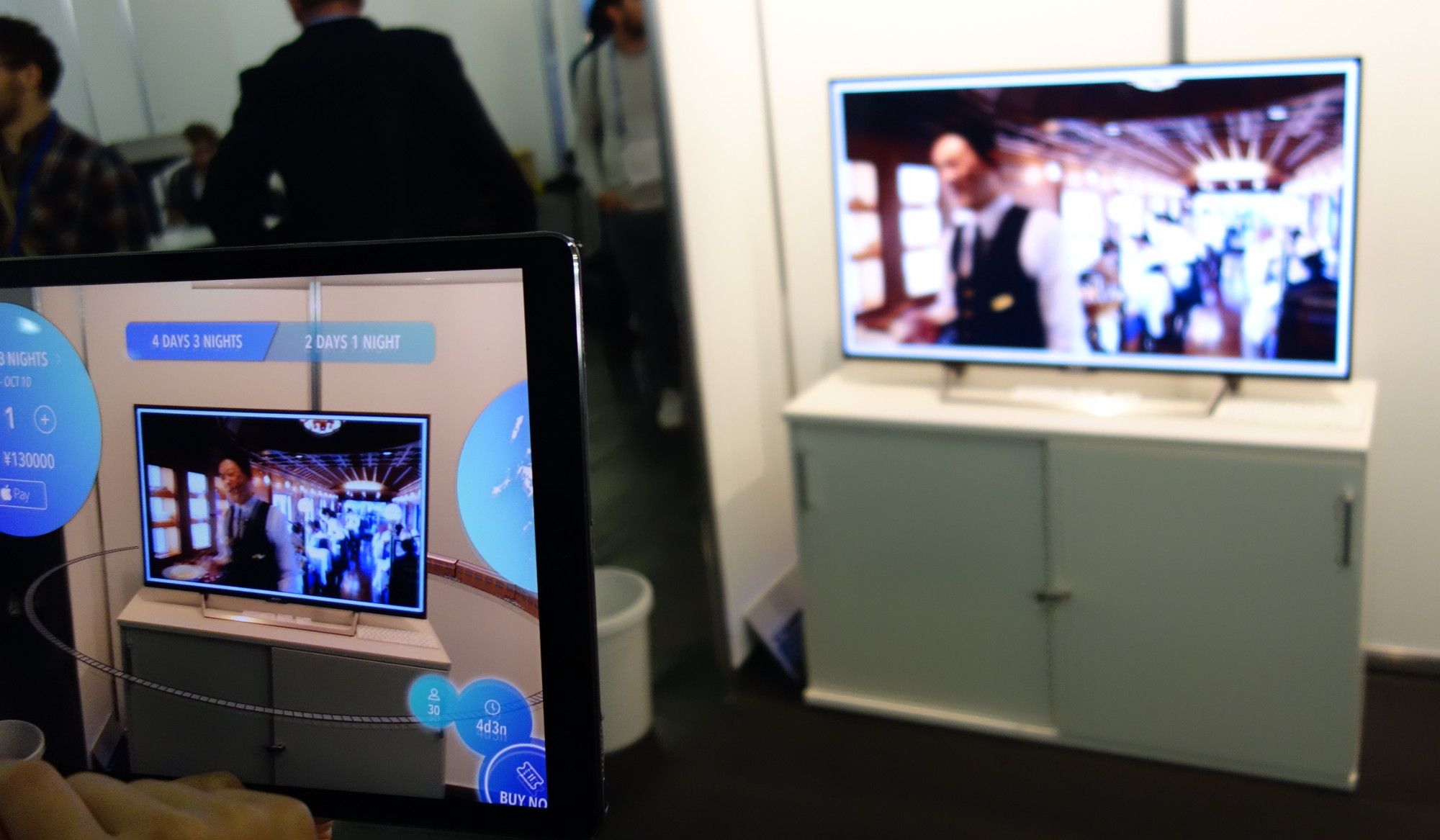 In a dedicated exhibition hall at the MOC, more than 90 companies will be showcasing their AR and VR products. The range of topics is broad, from work to entertainment applications. The technology from the Munich startup Eyecandylab, for example, is particularly exciting. A corresponding app on a smartphone or tablet enhances the TV picture with additional information: The user looks through their device at the TV and sees other relevant content around it. From November 6th to 10th, viewers can try out the technology for themselves on the Pro7 program "Galileo."