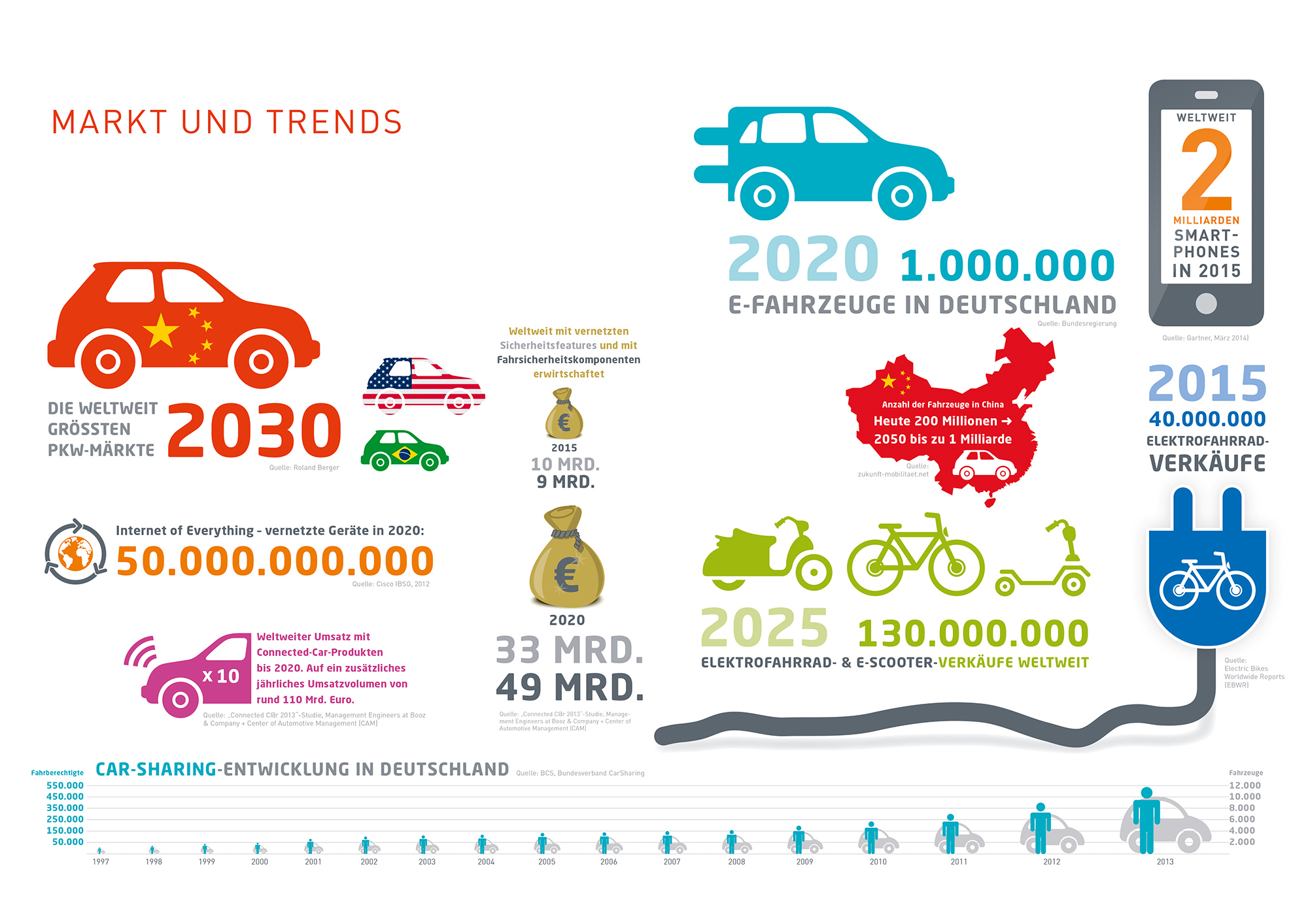 From September 17 to 27, 2015, consumers, trade visitors, science, politics, and industry will meet for the 66th time at the International Motor Show (IAA) in Frankfurt/Main. gruenderszene.de According to reports, almost one million visitors and more than 1,000 exhibitors are expected. This year, the IAA concept has been expanded to include an additional exhibition area, the New Mobility World: a new platform that focuses on people and their mobility needs and presents the latest trends in mobility.