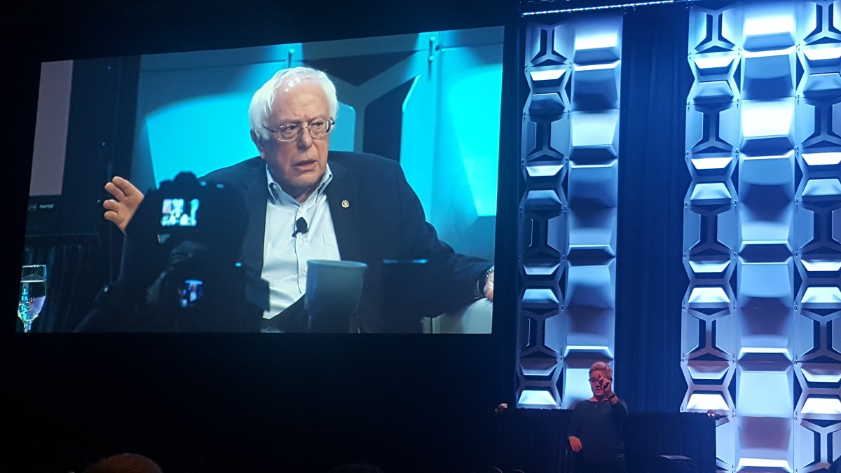 After the opening, I actually wanted to wander around the city, get to know the various locations, and get my bearings. Before it all started, I wasn't aware that I'd be sitting in my seat for five hours. While waiting to be admitted, I quickly realized that at 12:30 p.m., in the very Ballroom D of the Convention Center, outside whose doors I had just patiently queued with thousands of others, none other than US Senator and self-proclaimed number one Trump opponent Bernie Sanders would be invited on stage by CNN's Jake Trapper for a talk. You're reluctant to give up a good seat in the fifth row. Especially since the interlude program is by no means uninteresting.