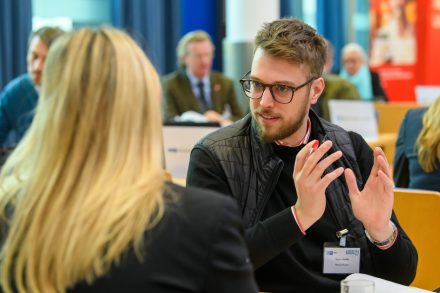 On 22 November 2018, the IHK Academy Munich hosted the Export Day Bavaria 250 participants received advice from German Chambers of Commerce Abroad (AHKs) from over 70 countries on foreign markets worldwide. Two startups from Munich were also present this year. The startups Spyra and Mr Beam Lasers each won a free ticket in the Export Day 2018 startup competition organized by the Chamber of Commerce and Industry for Munich and Upper Bavaria. Christian Neugebauer, speaker in the International, Industry, and Innovation division and member of the Startup Unit of the Chamber of Commerce and Industry for Munich and Upper Bavaria, spoke at the event with Marius Rudolf, Co-Founder, Business Development and Sales. Spyra and Teja Philipp, Founder and CEO of Mr Beam Lasers.