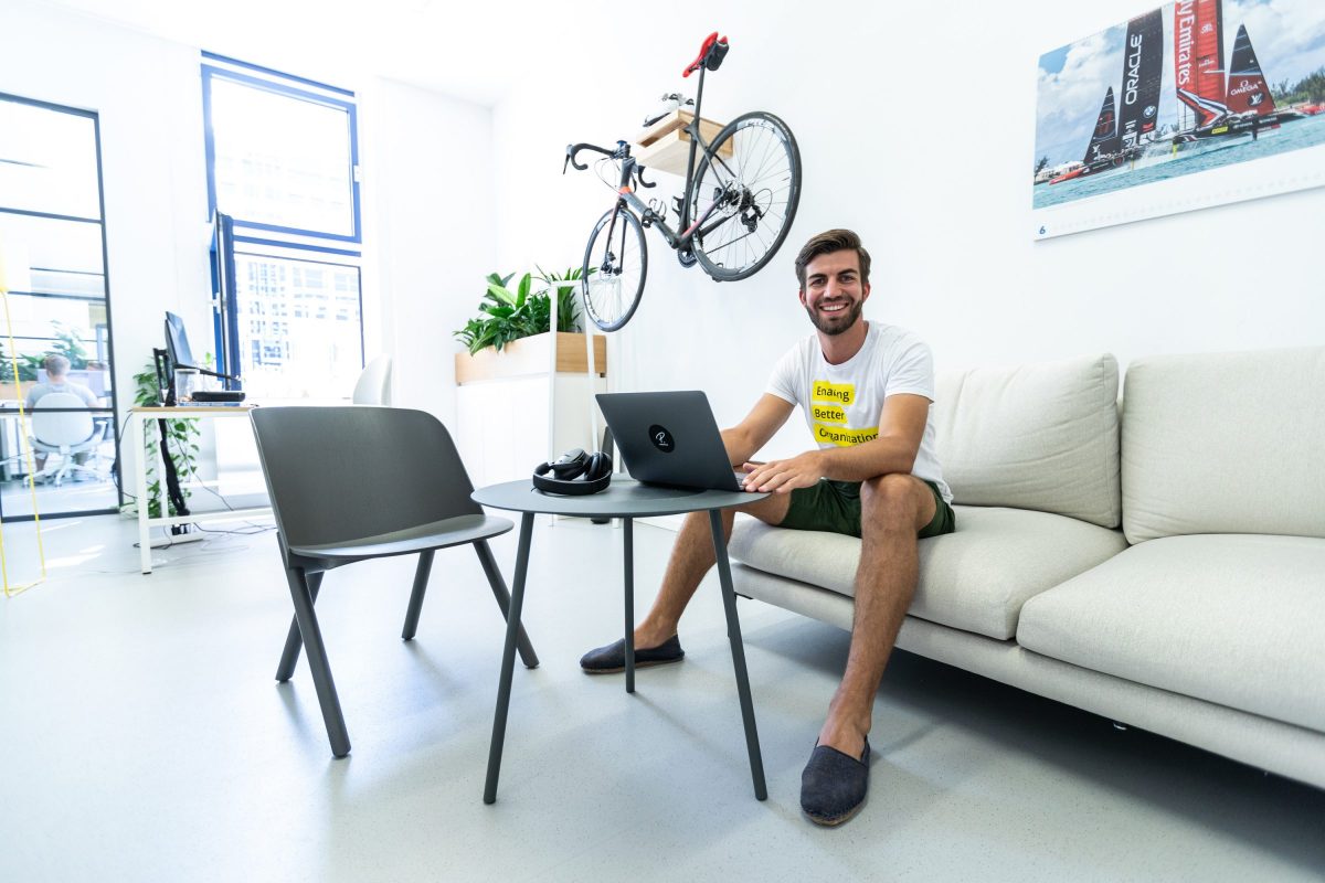 The Personio Office – Insights into the new office Helen Duran September 19, 2019 2 min reading time Bike rack on the wall, laptop on the table: CEO Hanno Renner in his office. He is currently working hard on recruiting additional employees. Because Personio is currently building its international team for European expansion, as he revealed to us in an interview. Copyright of all photos: Personio read more ↓
