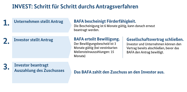 INVEST also supports startups in their search for investors. Upon request, the program will assess their eligibility for funding. Eligible companies can register in a directory maintained by the Business Angels Network Germany (BAND).